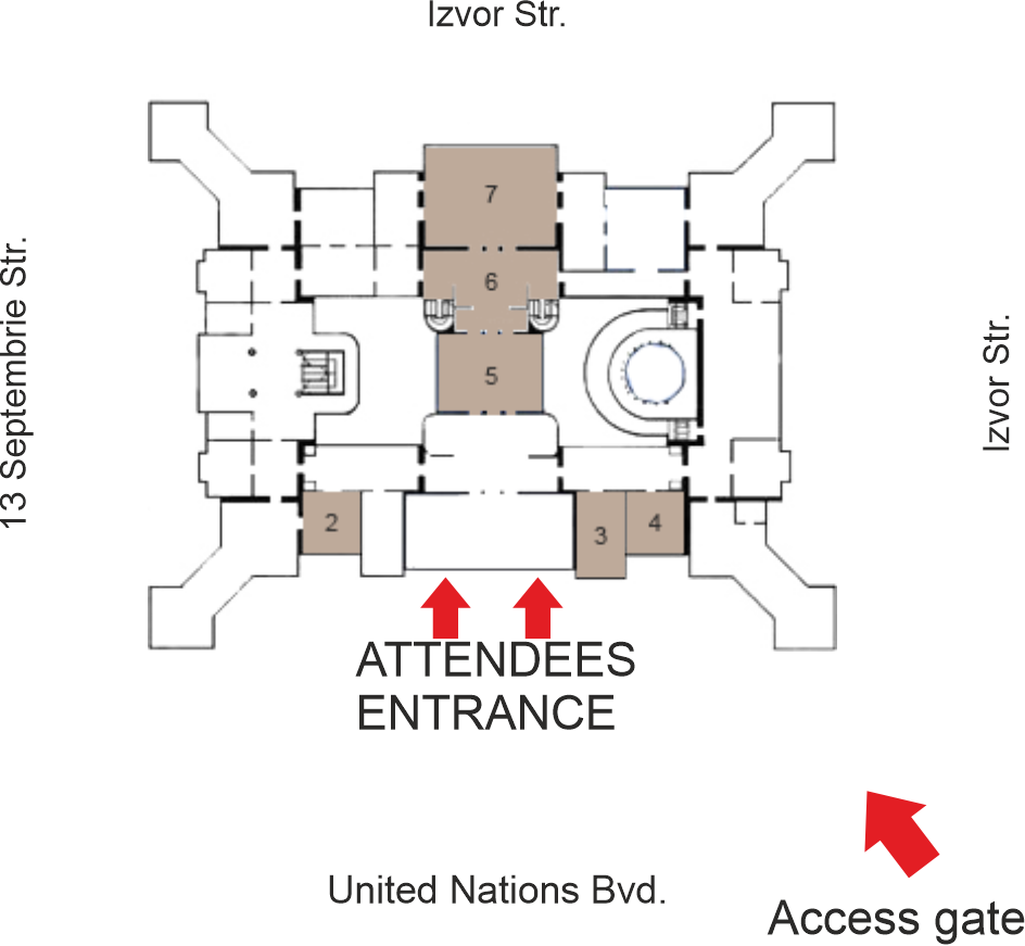Access to the Palace of Parliament through Gate C1 (or Entrance C1) is the main entrance for conference participants.